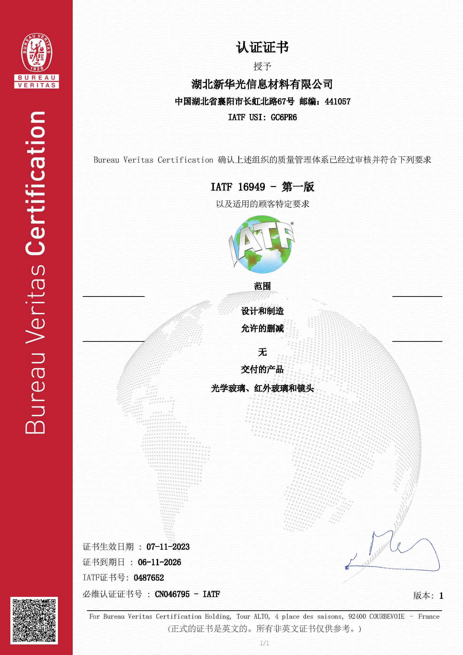 - 2023年通過IATF 16949:2016質(zhì)量管理體系標(biāo)準(zhǔn)換版認(rèn)證。